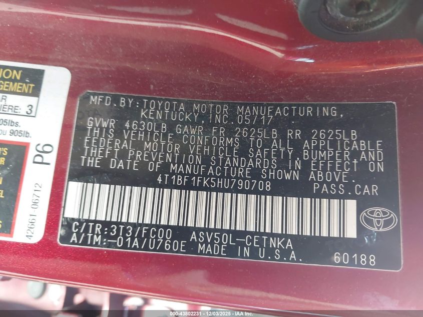 Автомобіль 2017 року — чудовий вибір для тих, хто цінує якість, надійність і вигоду. Компанія Royal Motors пропонує пригнати TOYOTA CAMRY з США під ключ: ми перевіряємо авто за VIN (4T1BF1FK5HU790708), організовуємо доставку, розмитнення та за потреби — ремонт на власному СТО в Києві. Ця модель має колір Бургундія, працює на Бензин, оснащена двигуном 2.5 і приводом Передній привід. З Royal Motors ви отримуєте повністю перевірений автомобіль із прозорою історією та вигідною ціною.