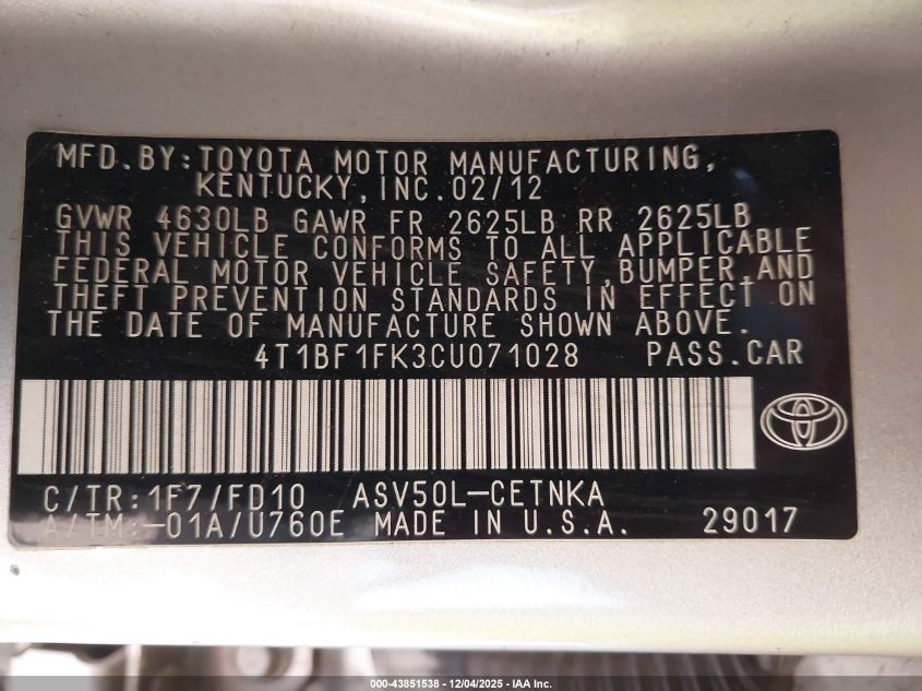 Автомобіль 2012 року — чудовий вибір для тих, хто цінує якість, надійність і вигоду. Компанія Royal Motors пропонує пригнати TOYOTA CAMRY з США під ключ: ми перевіряємо авто за VIN (4T1BF1FK3CU071028), організовуємо доставку, розмитнення та за потреби — ремонт на власному СТО в Києві. Ця модель має колір Срібний, працює на Бензин, оснащена двигуном 2.5 і приводом Передній привід. З Royal Motors ви отримуєте повністю перевірений автомобіль із прозорою історією та вигідною ціною.