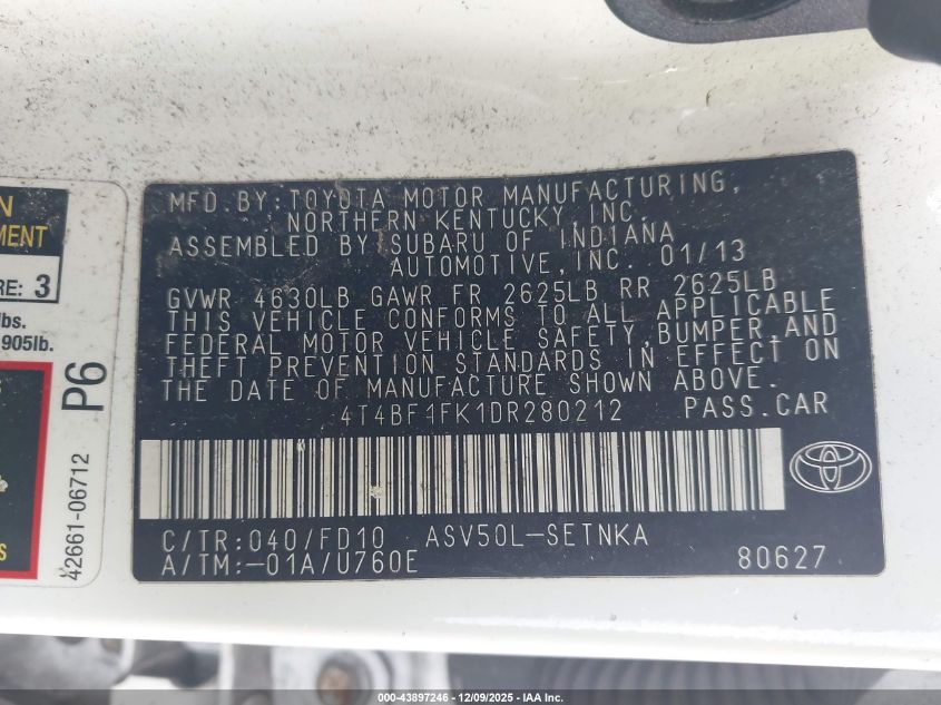 Автомобіль 2013 року — чудовий вибір для тих, хто цінує якість, надійність і вигоду. Компанія Royal Motors пропонує пригнати TOYOTA CAMRY з США під ключ: ми перевіряємо авто за VIN (4T4BF1FK1DR280212), організовуємо доставку, розмитнення та за потреби — ремонт на власному СТО в Києві. Ця модель має колір Білий, працює на Бензин, оснащена двигуном 2.5 і приводом Передній привід. З Royal Motors ви отримуєте повністю перевірений автомобіль із прозорою історією та вигідною ціною.