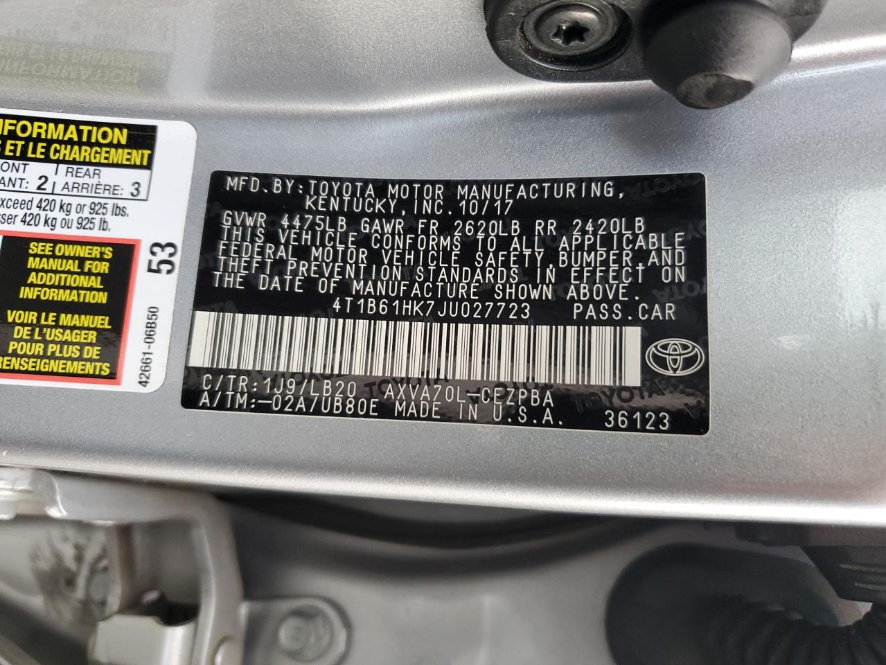 Автомобіль 2018 року — чудовий вибір для тих, хто цінує якість, надійність і вигоду. Компанія Royal Motors пропонує пригнати TOYOTA CAMRY з США під ключ: ми перевіряємо авто за VIN (4T1B61HK7JU027723), організовуємо доставку, розмитнення та за потреби — ремонт на власному СТО в Києві. Ця модель має колір Срібний, працює на Бензин, оснащена двигуном 2.5 і приводом . З Royal Motors ви отримуєте повністю перевірений автомобіль із прозорою історією та вигідною ціною.