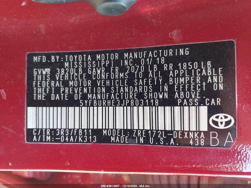Автомобіль 2018 року — чудовий вибір для тих, хто цінує якість, надійність і вигоду. Компанія Royal Motors пропонує пригнати TOYOTA COROLLA з США під ключ: ми перевіряємо авто за VIN (5YFBURHE3JP803118), організовуємо доставку, розмитнення та за потреби — ремонт на власному СТО в Києві. Ця модель має колір Червоний, працює на Бензин, оснащена двигуном 1.8 і приводом Передній привід. З Royal Motors ви отримуєте повністю перевірений автомобіль із прозорою історією та вигідною ціною.