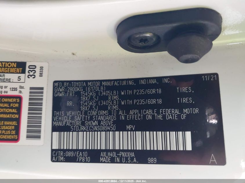 Автомобіль 2022 року — чудовий вибір для тих, хто цінує якість, надійність і вигоду. Компанія Royal Motors пропонує пригнати TOYOTA SIENNA з США під ключ: ми перевіряємо авто за VIN (5TDJRKEC5NS089450), організовуємо доставку, розмитнення та за потреби — ремонт на власному СТО в Києві. Ця модель має колір Білий, працює на Гібрид, оснащена двигуном 2.5 і приводом Передній привід. З Royal Motors ви отримуєте повністю перевірений автомобіль із прозорою історією та вигідною ціною.