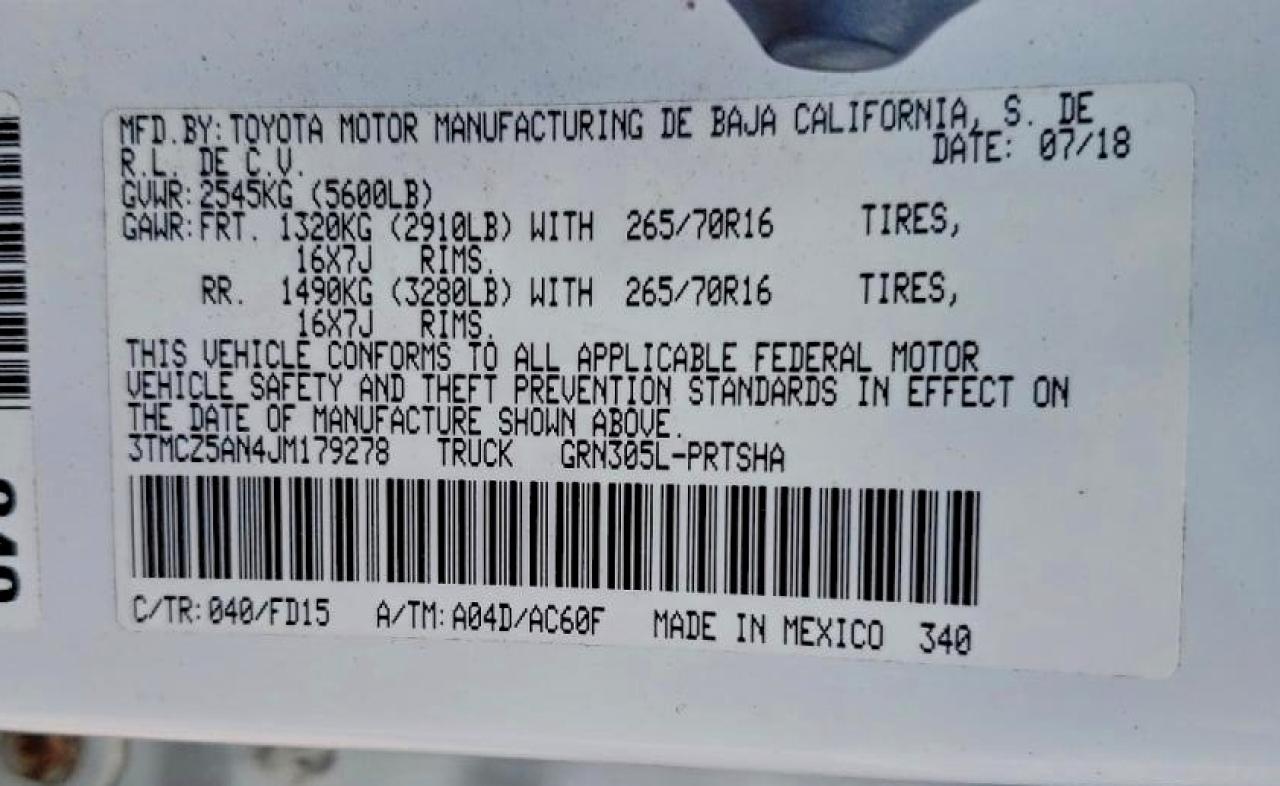 Автомобіль 2018 року — чудовий вибір для тих, хто цінує якість, надійність і вигоду. Компанія Royal Motors пропонує пригнати TOYOTA TACOMA з США під ключ: ми перевіряємо авто за VIN (3TMCZ5AN4JM179278), організовуємо доставку, розмитнення та за потреби — ремонт на власному СТО в Києві. Ця модель має колір Білий, працює на Бензин, оснащена двигуном 3.5 і приводом 4x4 з заднім приводом. З Royal Motors ви отримуєте повністю перевірений автомобіль із прозорою історією та вигідною ціною.
